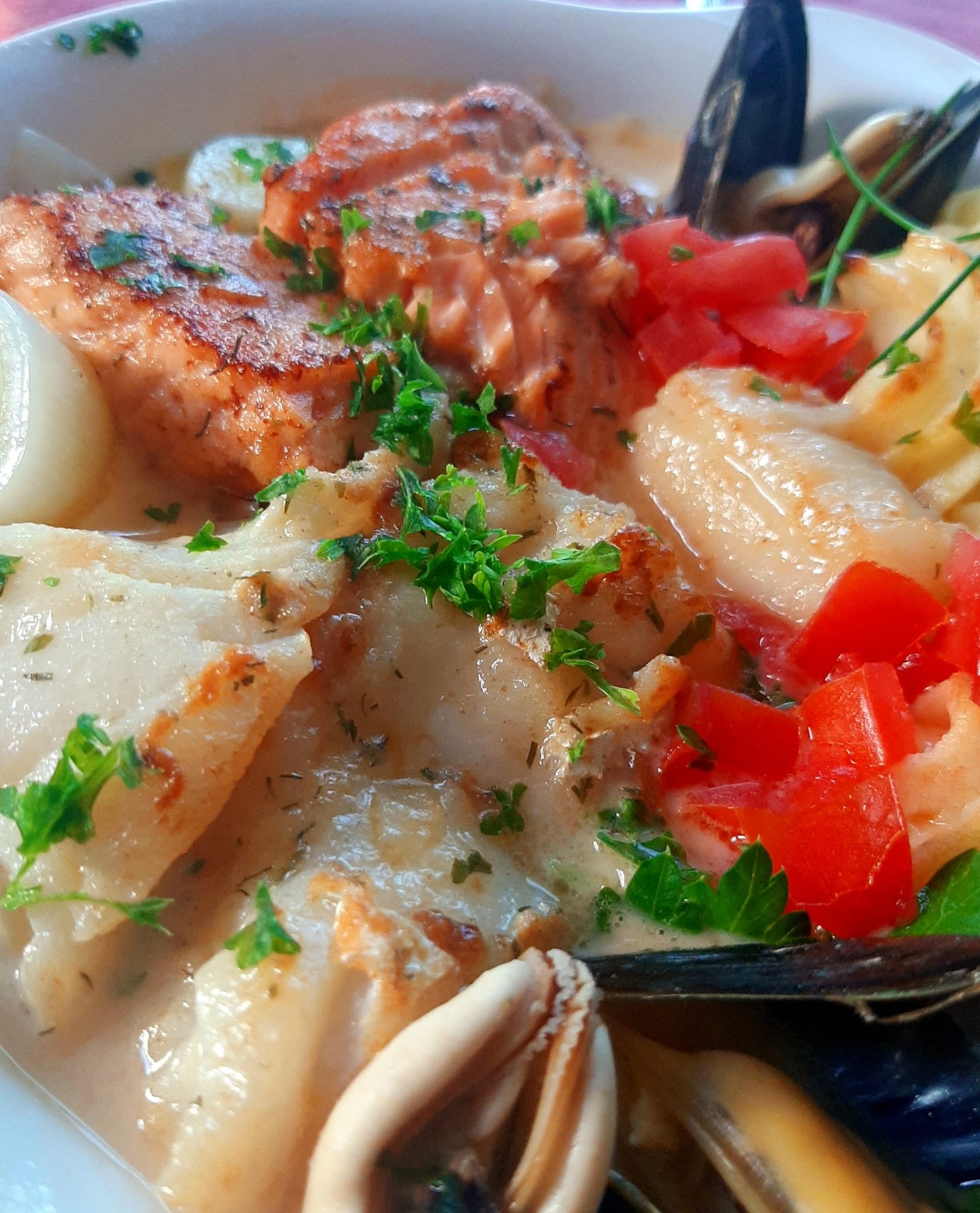Een smaakvolle combinatie, zoals je kunt zien op de foto's, waarvan elke visliefhebber zal genieten en... een zeer lekker aangepast sausje.