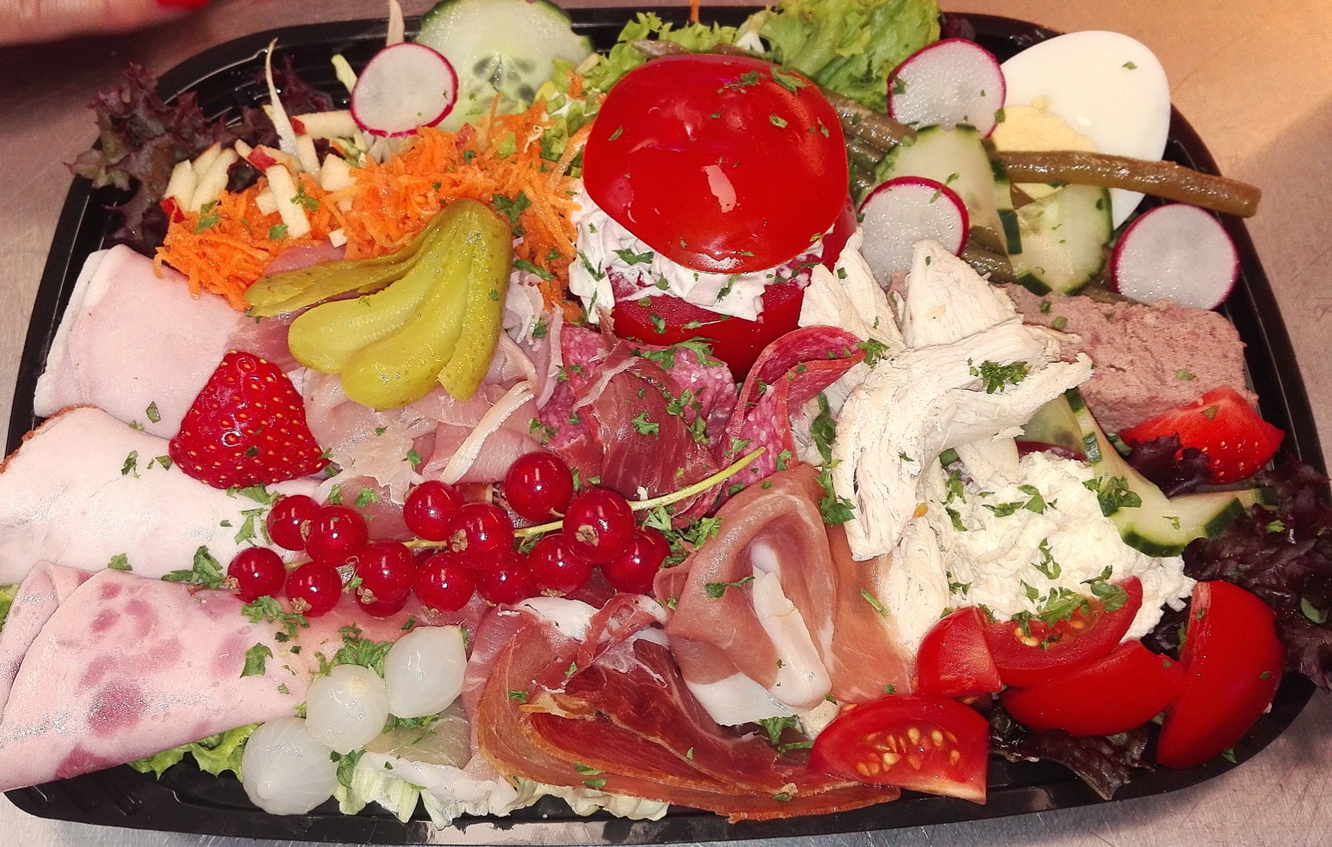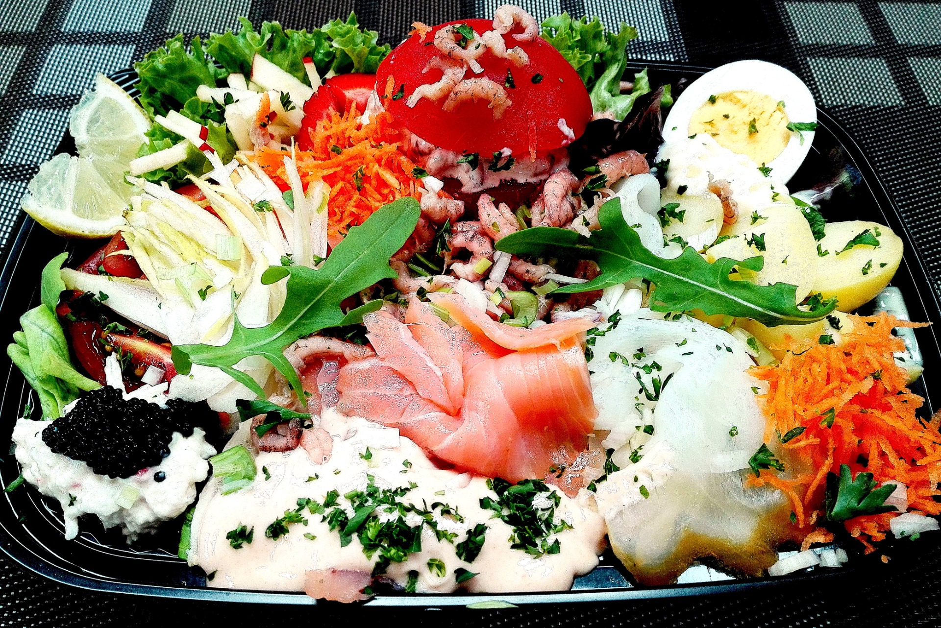 - Kraak verse koude schotel(s) vis / garnaal / vlees, mogelijk ook gedresseerd op grote schotel voor meerdere personen klaar gemaakt juist voor afhaling.